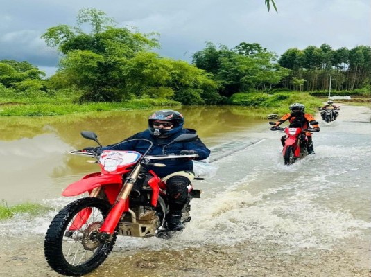 Leaving Hanoi in the early morning, the journey begins with a ride through peaceful countryside, rice fields, and gentle rolling hills. The noise of the city fades away, replaced by fresh air and the smell of farmland. As the road approaches Yen Bai, the vast Thac Ba Lake slowly appears, its calm blue water dotted with hundreds of small green islands.